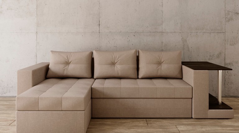 Диван Угловой Константин со столом серо-коричневая рогожка Craftmebel