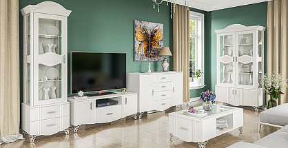 Гостиная «София» - это великолепие белого глянца в сочетании с серебристой фактурой.