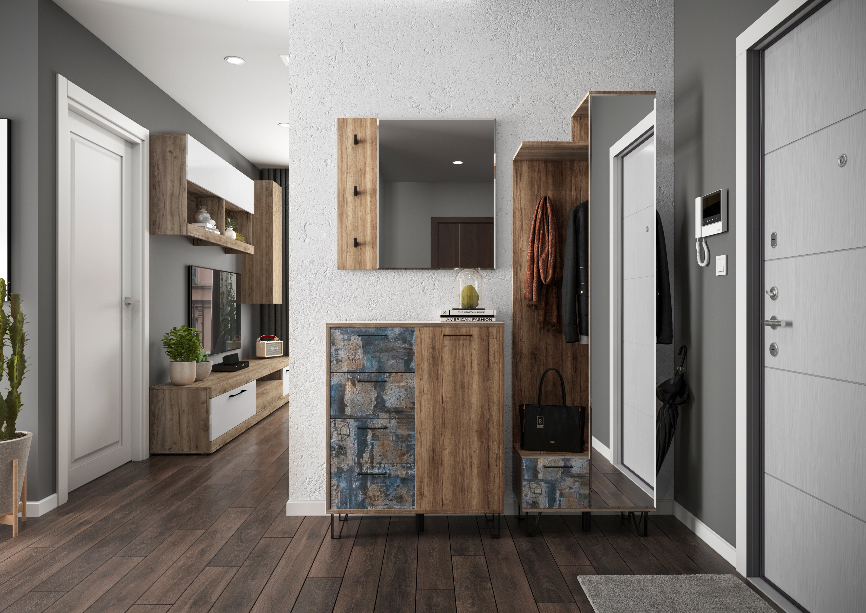 Модульная прихожая «Колибри» от фабрики «SV-Мебель» - это уникальное сочетание натуральной фактуры дерева и современных декоративных элементов.