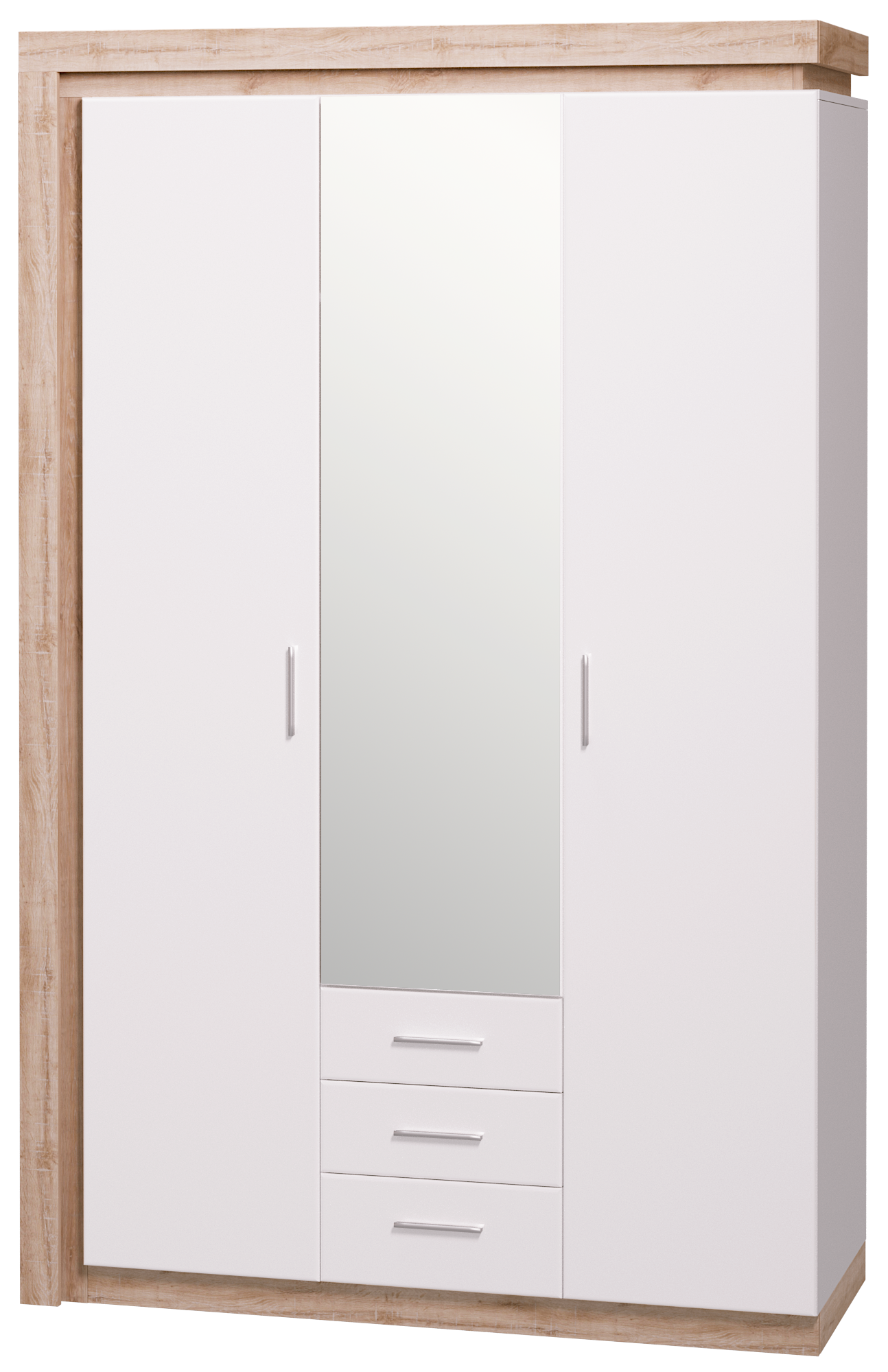 - Коллекция представлена в следующем цветовом решении: корпус ЛДСП 16 мм в декоре «Дуб Сакраменто» и фасад МДФ 16 мм в декоре «Белый снег глянец»;